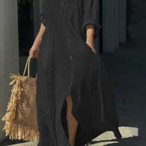 2024 Women’s Autumn Cotton Linen Long Dress White Long Sleeve Oversize Shirt Dresses Female Casual Fashion Loose Clothing Ladies.