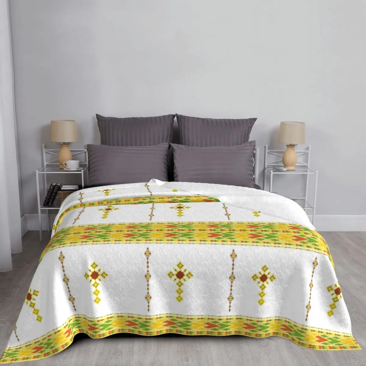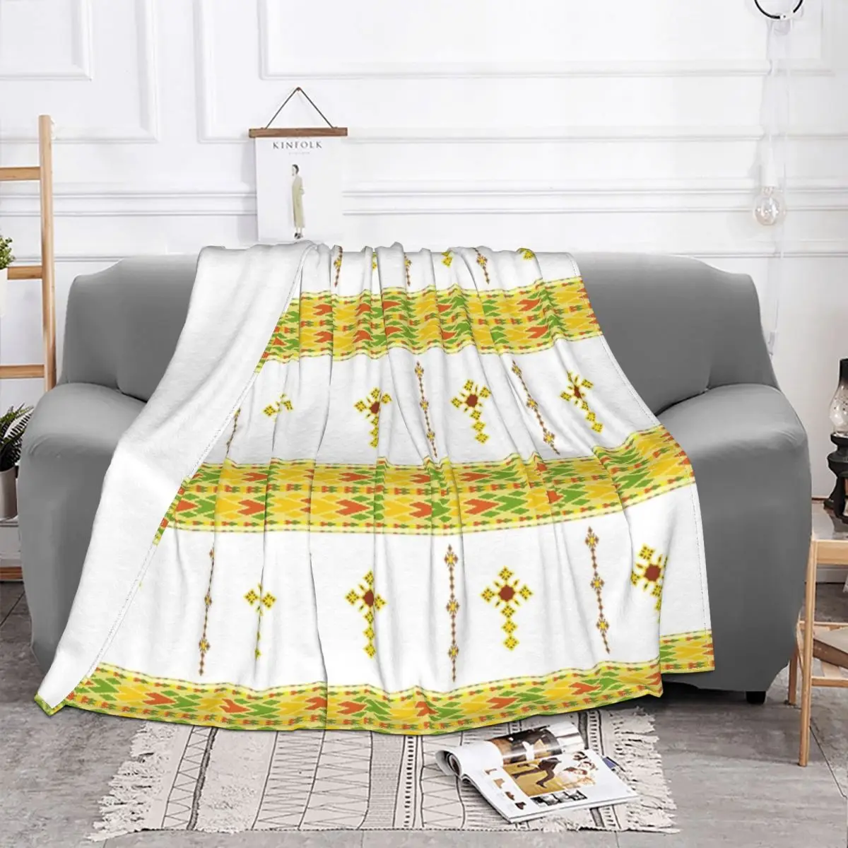 Ethiopian Cross Habesha Tibeb Telet Blankets Flannel Spring Autumn Ethiopia Soft Throw Blankets for Sofa Office Quilt
