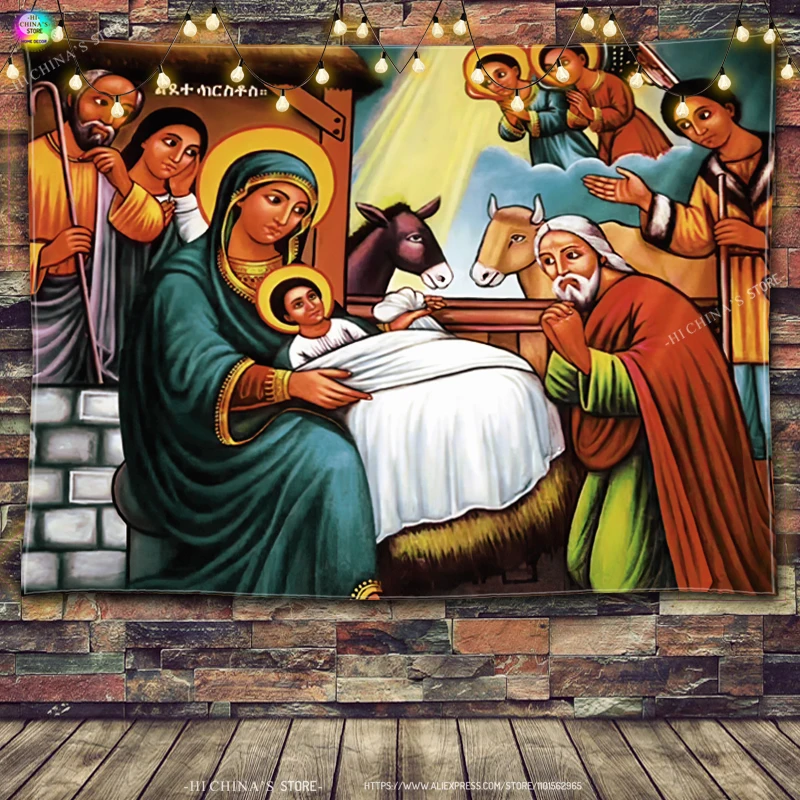 Nativity Scene Jesus Birth Christmas Wall Decor Tapestry Jesus Medieval Decoration Hanging Room For Bedroom Vintage Macrame Easter Mural Aesthetic Hippie Tapestry Psychedelic Mushroom Tapestries Anime Moon Snail Wall Hanging Cloth Alien Home Wall Decor Black Background Room
